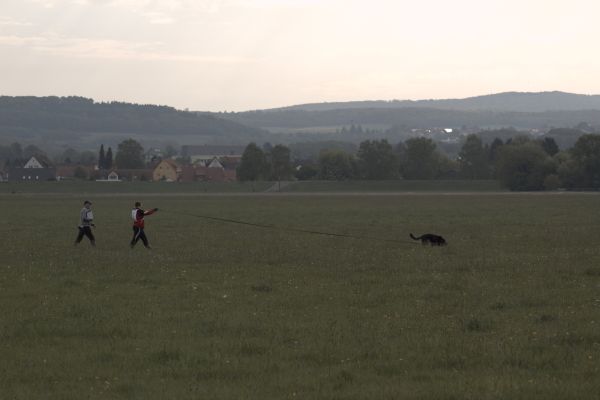 Gegen 18:15 Uhr, nach Einbruch der Dunkelheit, gingen dann zuerst zwei Welpen an den Start. Aufgrund eines plötzlich einsetzenden Platzregens wurde beschlossen die Übung zu unterbrechen.